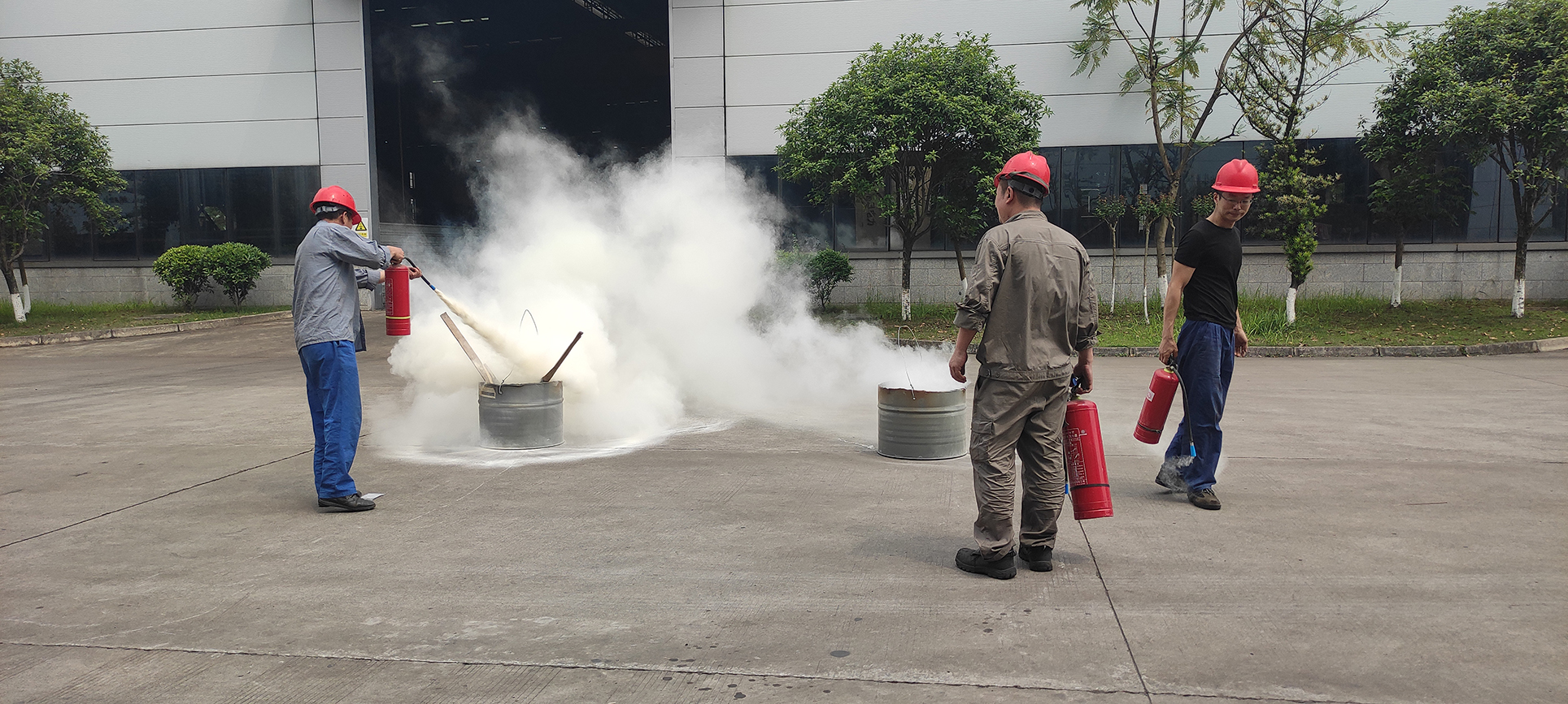 下午進行第二階段學習,由消防培訓公司講解消防安全知識并組織進行消防器材使用的演練。