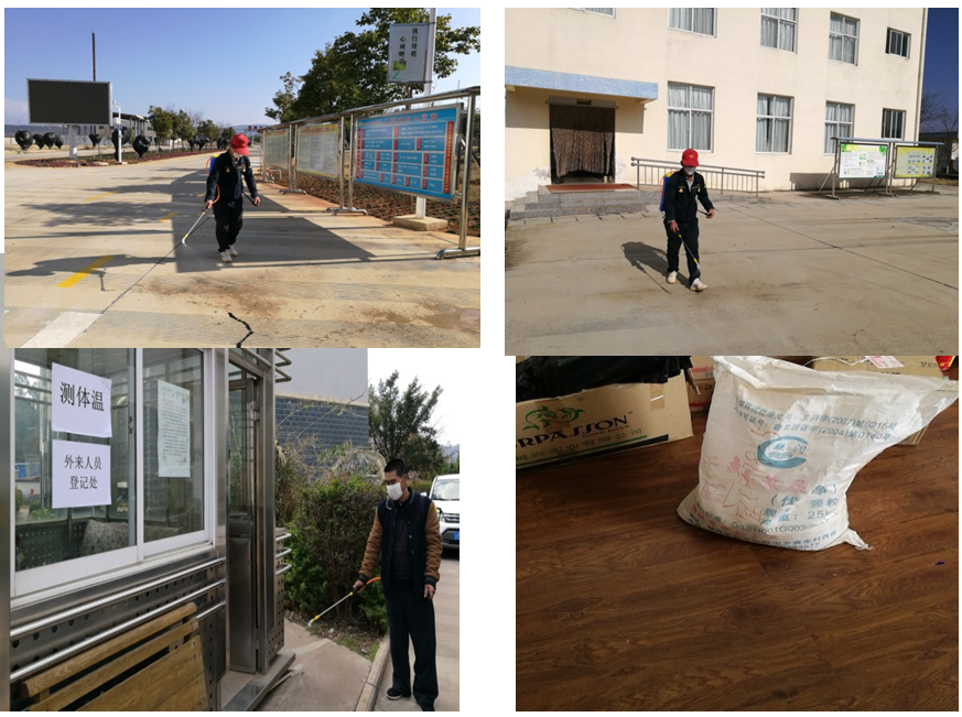 武定分公司在防疫工作領(lǐng)導(dǎo)小組的指揮協(xié)調(diào)下,編制了分公司應(yīng)對新冠疫情工作方案,及時在中干微信群、黨支部微信群和員工微信群中發(fā)放應(yīng)對疫情工作通知和防疫宣傳資料,每日核實各部門職工出行及健康情況,按要求匯總上報公司總部。各黨支部、各部門、生產(chǎn)車間,全體黨員、干部職工群策群力應(yīng)對疫情,加強對各區(qū)域的值守,加強對新冠疫情防控知識的宣傳,加強防疫物品的采購配置,積極與武定縣相關(guān)部門聯(lián)系,得到政府支持,無償給分公司發(fā)放了十分緊缺的消毒液,并采購到三只非接觸式紅外測溫儀,分別在辦公區(qū)、生產(chǎn)區(qū)和平田生活區(qū)進行人體測溫使用。