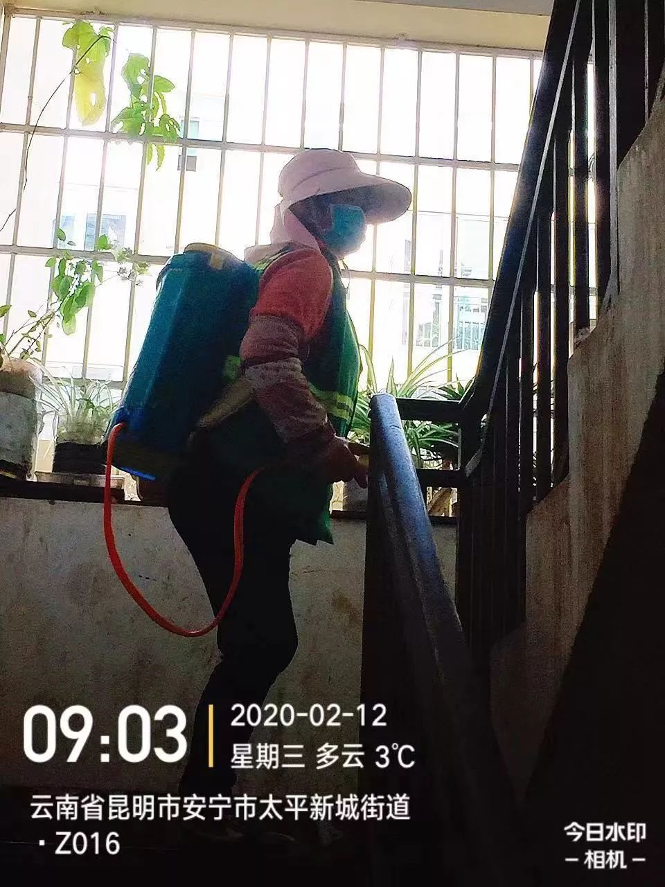 物業(yè)管理公司對生活區(qū)單元樓及單元門進行消毒