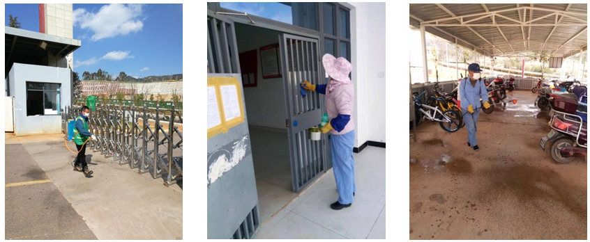 2月7日:1.對設備動力管理部大門、理化室、安化卡點、集貿(mào)市場、燈光球場進行消毒;2.園區(qū)巡查正常;3.在安寧新購置水桶后拉運消毒液600公斤;4.協(xié)助福保祥瑞公司完善復工復產(chǎn)期間的相關資料。