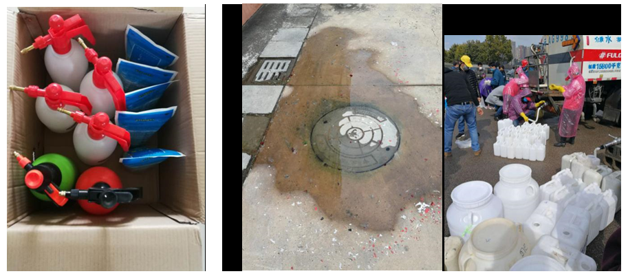 2月5日:1.在面臨消毒面廣、消毒液稀缺的緊要關頭,得到公司值班領導高劍指示,安寧市工信局在安寧市疾控中心對面場點進行次氯酸鈉消毒液供應,各企業(yè)可攜帶容器進行灌裝拉運。2.迅速攜帶找私人借用及安化社區(qū)唯一的桶具前往該地點,途中偶遇一家五金店開門,急購所需容器。3. 福保祥瑞公司生產(chǎn)正常有序;4.員工公寓及園區(qū)公共區(qū)域進行消毒。5.安寧市政府關心疫情期復工企業(yè),提供“愛心蔬菜”。6.安化家屬反映,其女兒所駕車輛輪胎在夜間漏氣,家人懷疑是被人蓄意破壞,讓該員工配合調(diào)查處理。經(jīng)調(diào)監(jiān)控視頻錄像,無為人蓄意破壞行為,輪胎實為有玻璃插入后緩慢泄氣所致,已向住戶進行詳細說明。