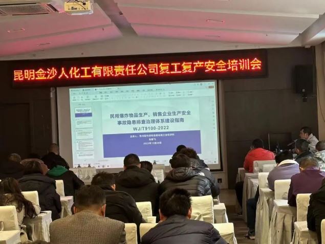 金沙人化工有限責(zé)任公司在迎接復(fù)工復(fù)產(chǎn)的重要時(shí)刻,邀請(qǐng)上級(jí)監(jiān)管部門(mén)東川區(qū)科技和信息化局的專業(yè)人員于2023年12月26日為公司全體員工開(kāi)展安全教育培訓(xùn)。