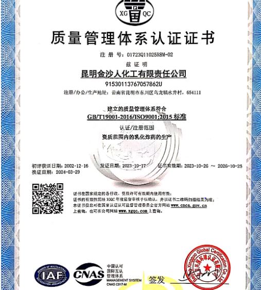 【新聞】昆明金沙人化工有限責(zé)任公司通過(guò)ISO9001質(zhì)量管理體系認(rèn)證