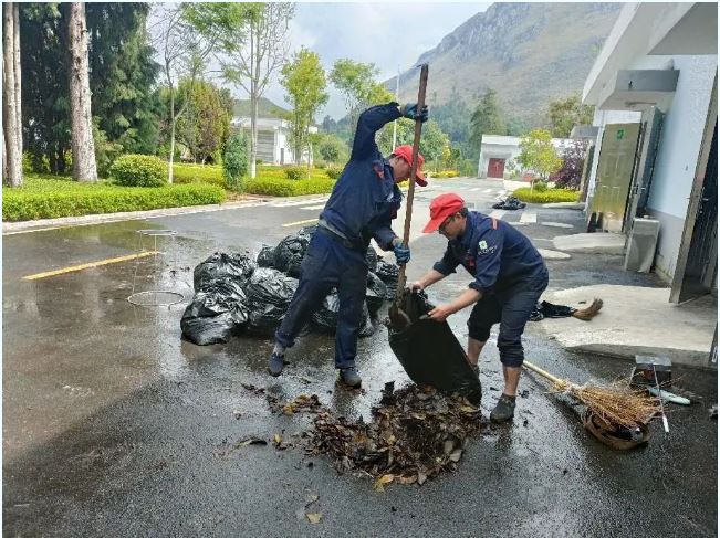 公司組織清掃隊伍對屋頂?shù)穆淙~進行全面清掃,消除了因落葉堵塞排水口而引發(fā)的屋頂積水安全隱患,并對發(fā)現(xiàn)的管道堵塞點進行清理疏通,確保屋頂?shù)呐潘到y(tǒng)暢通。同時清理了溝道內(nèi)的垃圾和淤泥,確保溝道無阻。