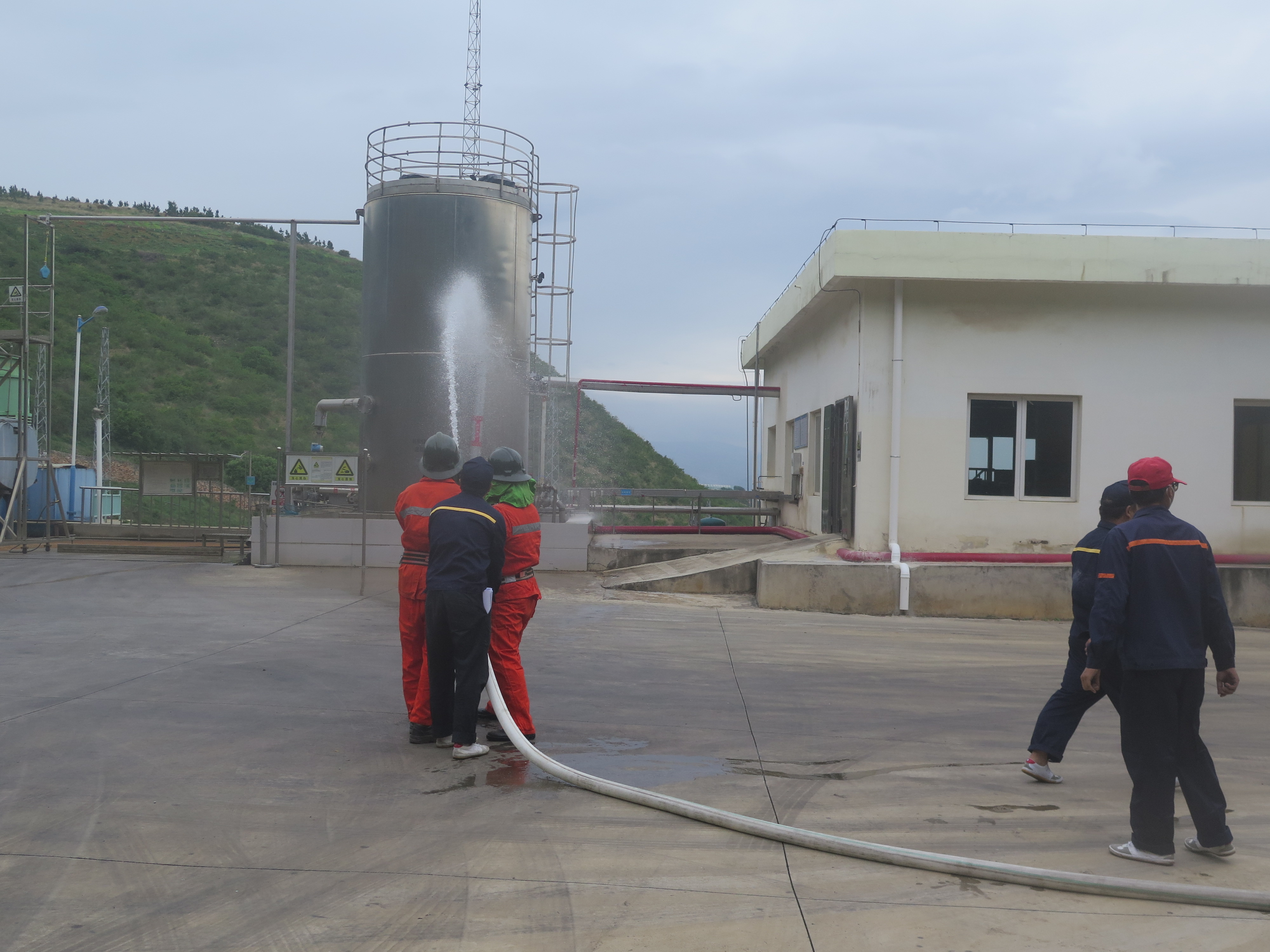 此次演練以開遠(yuǎn)分公司膨化硝銨炸藥生產(chǎn)線水油相制備工序硝酸銨溶液儲(chǔ)罐內(nèi)硝酸銨溶液熱分解起火為背景。演練前,開遠(yuǎn)分公司組織全體員工學(xué)習(xí)演練方案,并要求全體員工提高安全意識(shí),防患于未然,確保演練安全、有序。演練過程中各演練小組各司其職、井然有序,響應(yīng)迅速,配合緊密。